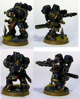 Я до сих пор думаю, в цвета какого легиона его красить - несунов, или ночников. Но все больше склоняюсь к ночникам: с несунами у меня проблема, не могу правильно покрасить броню. Также, не совсем ясно, какие ордена космодесанта удостоить чести валяться у него под ногами и висеть на цепях под боком: один точно будет кулаком, а второй... возможно, железноруким. Или каким-нибудь другим кулаком - пока что не знаю.